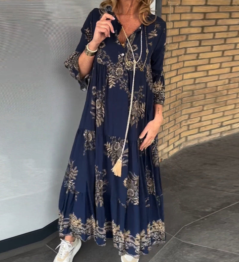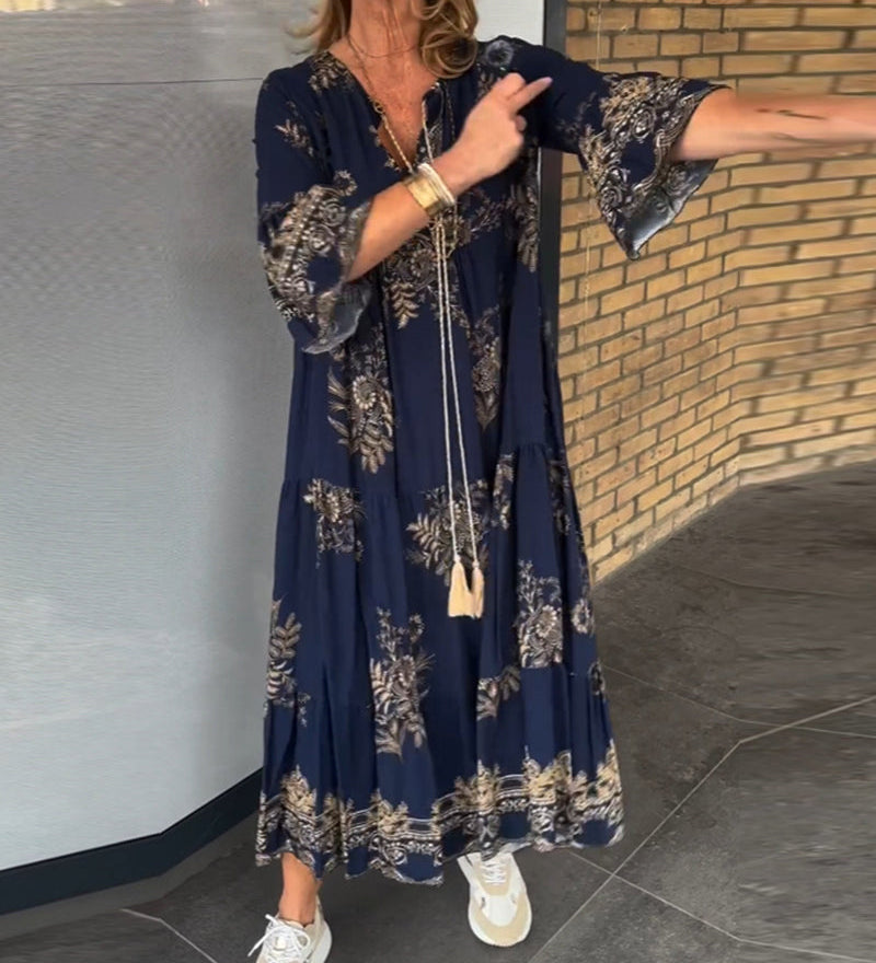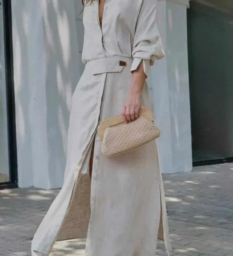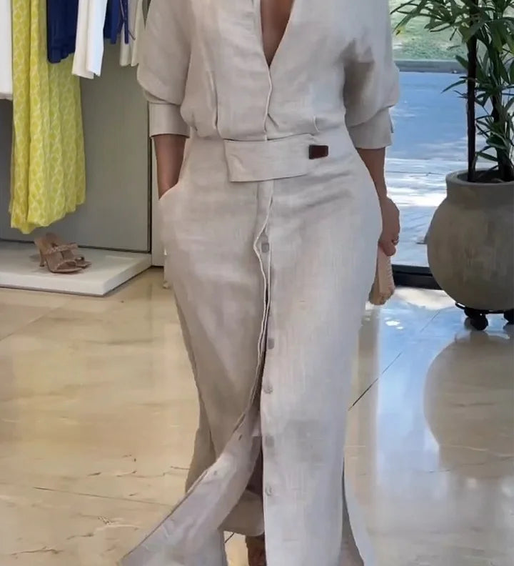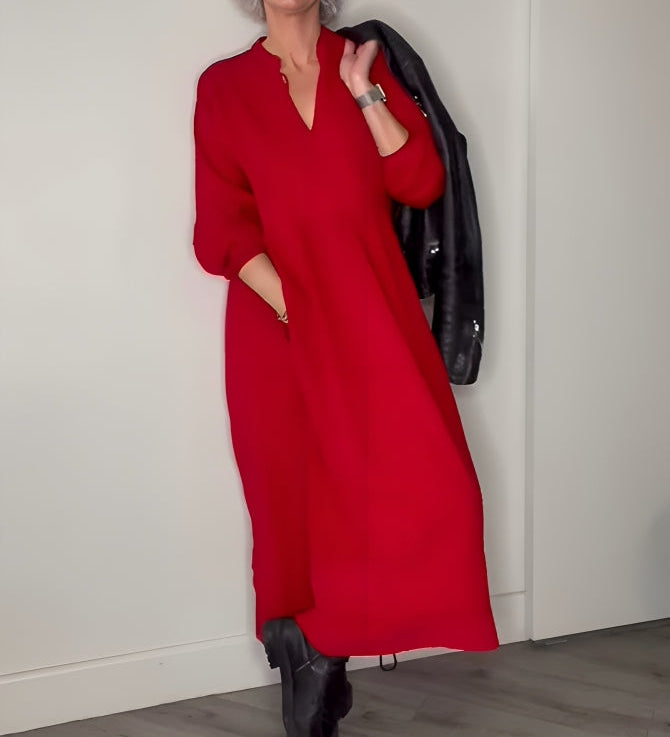 AMANDA – ROCHIE MAXI ELEGANTĂ CU MÂNECI LUNGI ȘI DECOLTEU ÎN V
