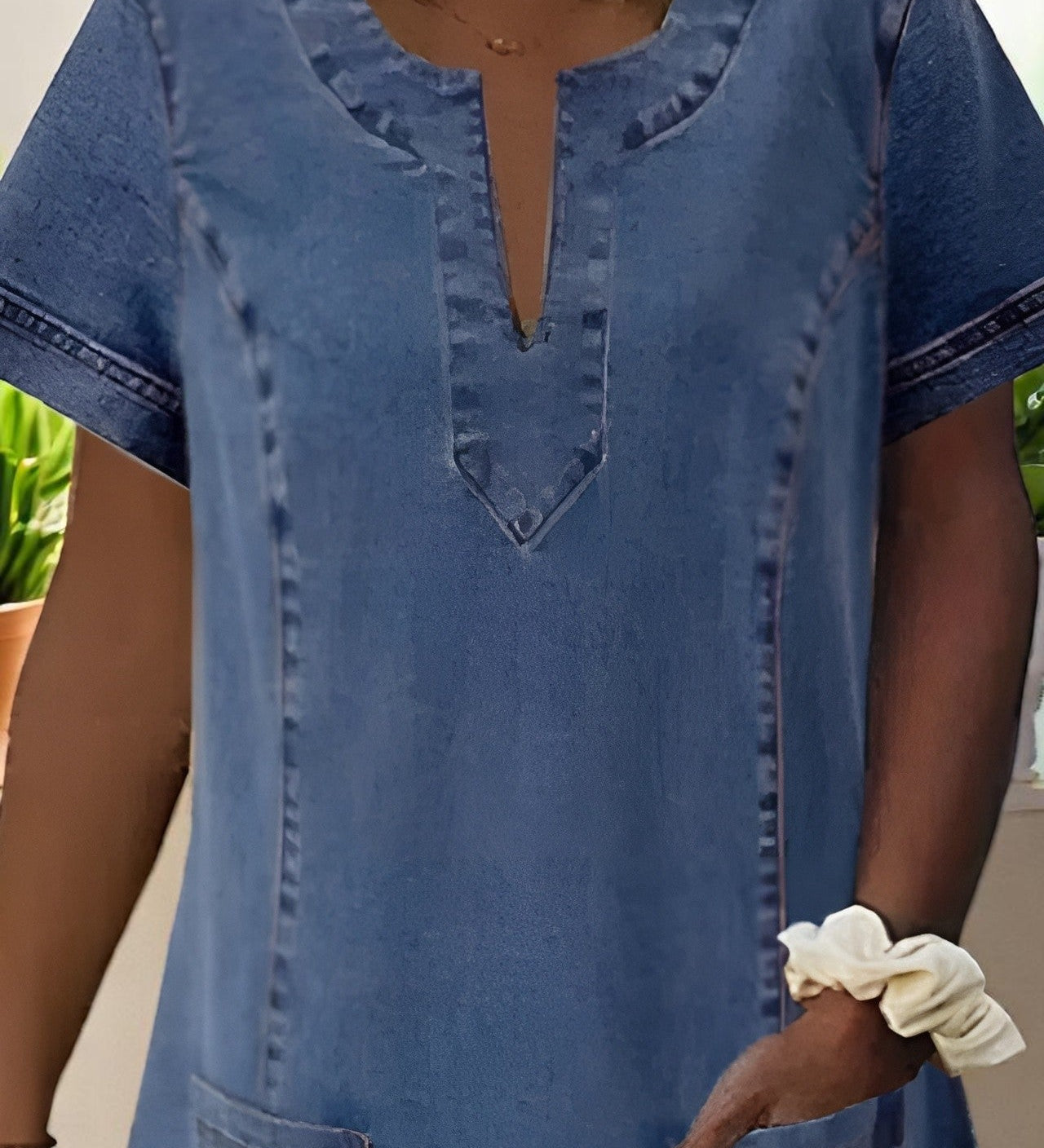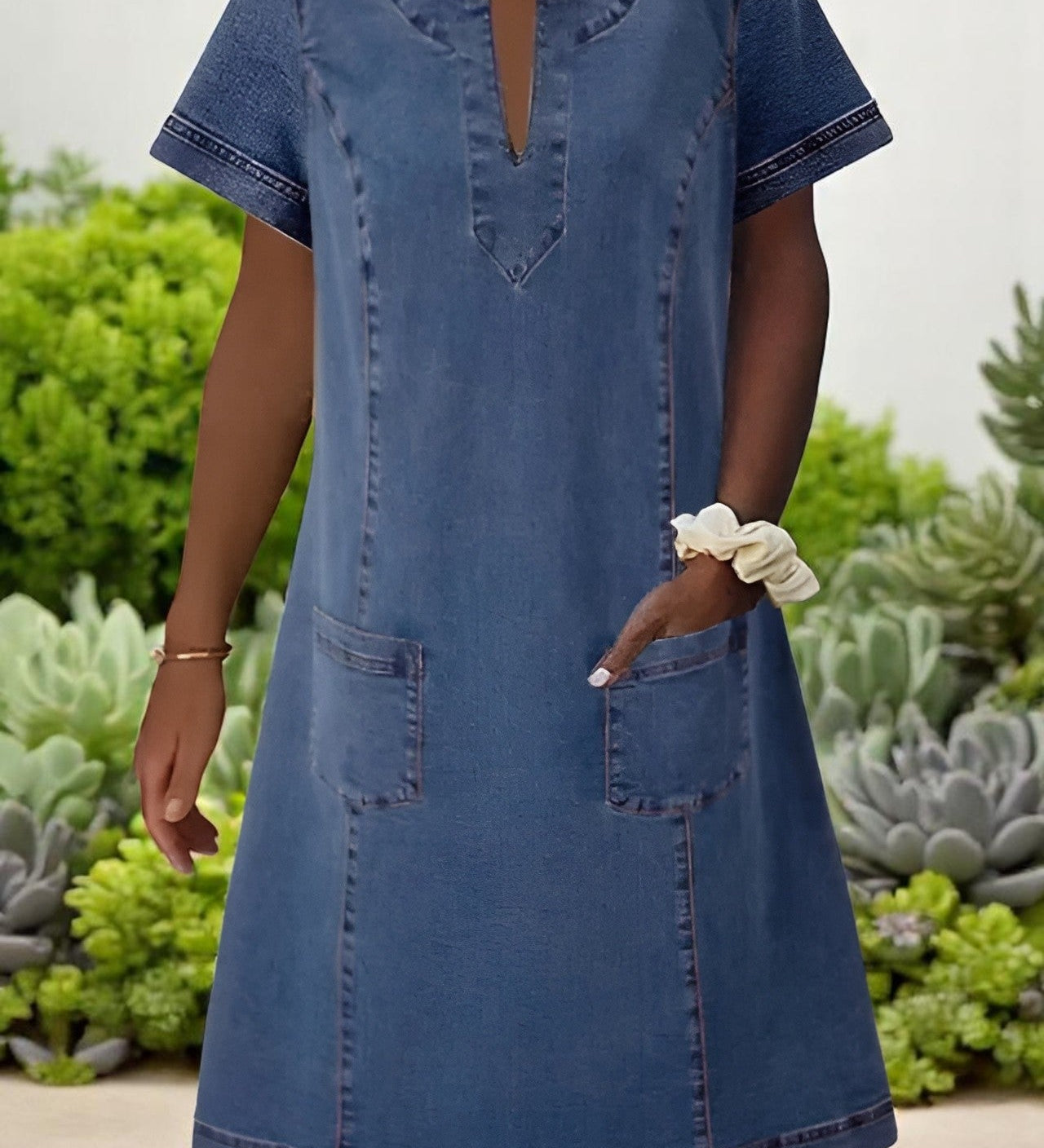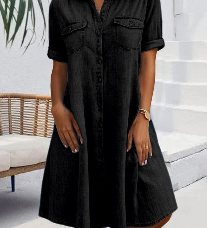 Sienna | Rochie din denim cu mânecă scurtă și nasturi