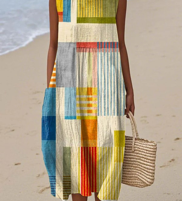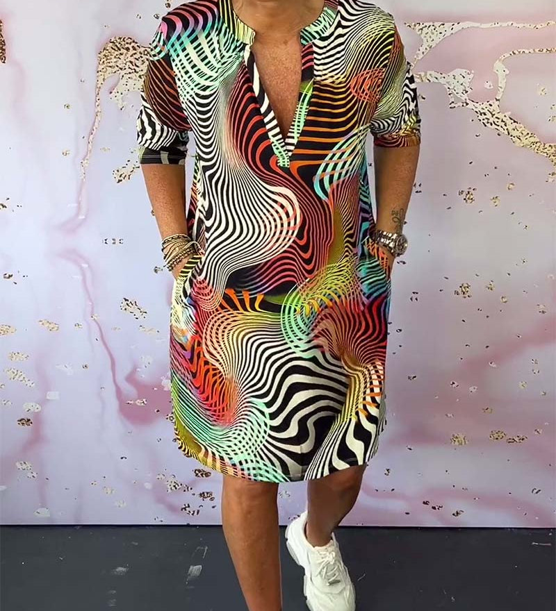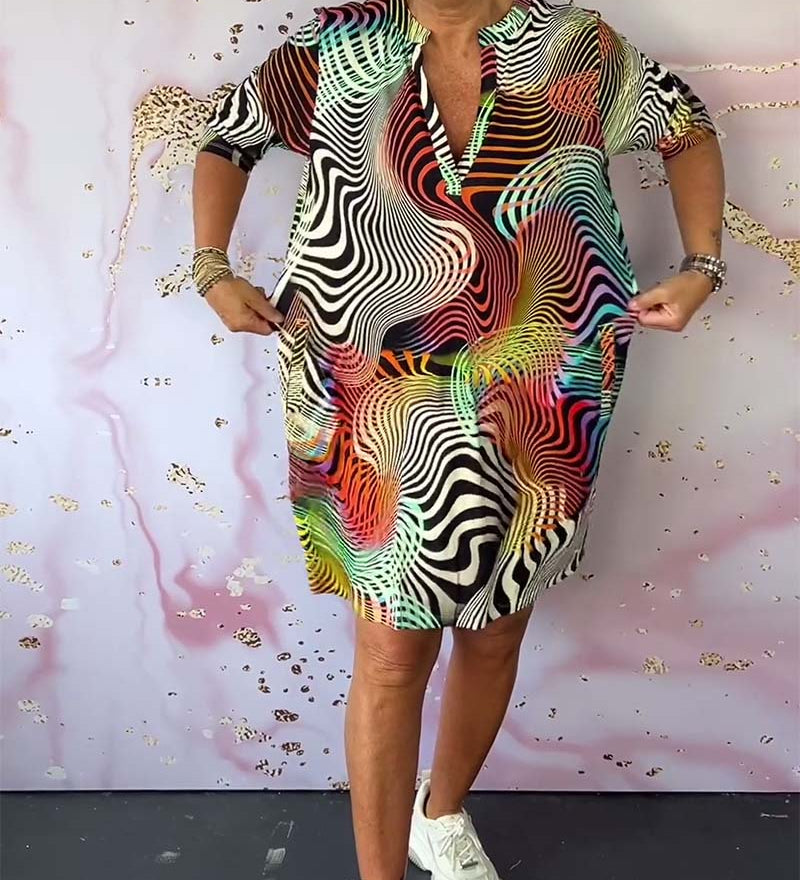 Rochie Midi Femei cu Decolteu în V Multicolor