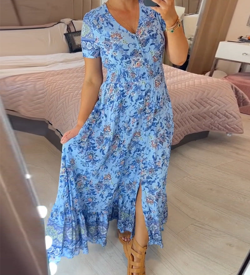 AMANDA - ROCHIE MAXI PLISATĂ CU DECOLTEU ÎN V ELEGANT