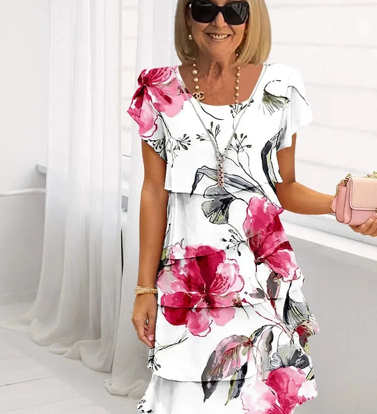 Maureen | Rochie Florală Cascadantă cu Plante Multiple