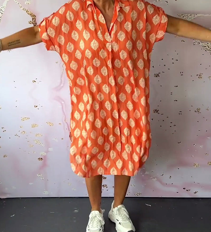 ELEANORA – ROCHIE CAMASĂ CU REVER LARG ȘI IMPRIMEU
