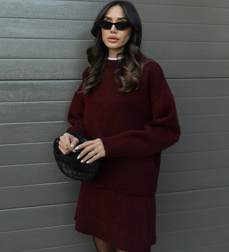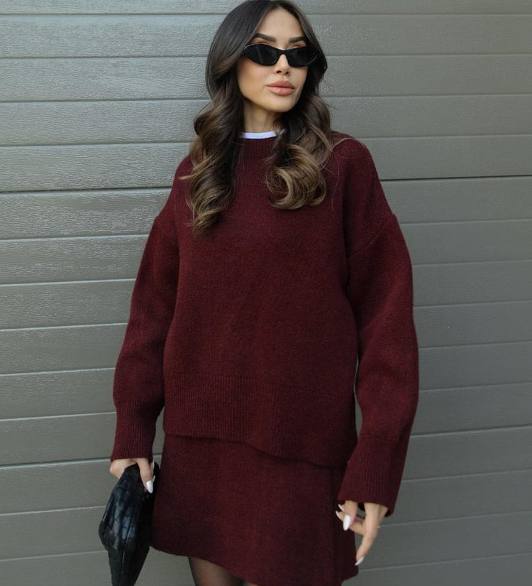 Set Asortat: Top Tricotat Gros și Fustă Midi Tricotată cu Talie Înaltă