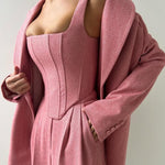 Confecționat din materiale premium cu un croi meticulos, Setul Grace asigură confort excepțional alături de un stil rafinat. Poți purta toate cele trei piese împreună pentru un aspect elegant și coordonat, sau le poți combina individual pentru a crea nenumărate ținute stilate potrivite pentru orice ocazie.
