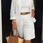 • Look complet: Include un sacou coordonat și pantaloni scurți (curea nu este inclusă)