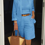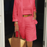 Setul Junessa combină un sacou croit și pantaloni scurți asortați pentru un look modern care este atât elegant, cât și confortabil. Fabricat din bumbac moale și respirabil, disponibil într-o gamă de culori frumoase, acest ansamblu versatil este perfect pentru zilele calde—fie că te îndrepți spre un brunch, o întâlnire sau o seară casual.
