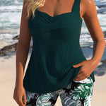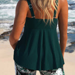 Setul Tankini Maya Palm Haven combină eleganța clasică cu un stil tropical. Cu un top cu detaliu de nod frontal care flatează, textură cu nervuri și pantaloni scurți cu imprimeu frunze, acest set este creat pentru femeile care doresc acoperire, suport și un stil deosebit. Este perfect pentru plimbări pe plajă, relaxare lângă piscină sau sesiuni active de înot.