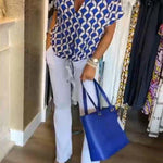 Îți prezentăm Topul Casual Bella – combinația perfectă între confortul relaxat și stilul elegant. Cu un decolteu în V care flatează și un imprimeu îndrăzneț, acest top adaugă o notă chic garderobei tale de zi cu zi. Fie că faci cumpărături, te întâlnești cu prietenii sau lucrezi de acasă, Bella face ca stilul să pară fără efort.
