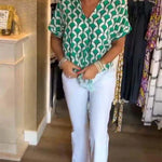 Audrey | Top Casual cu Imprimare și Decolteu în V