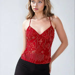 Acest top cu bretele din paiete oferă o combinație unică între stil și confort, fiind perfect pentru ocazii speciale sau ieșiri casual. Decorat cu detalii strălucitoare, precum perlele și paietele cusute manual, acest articol adaugă o notă de glamour oricărei ținute. Datorită designului său elegant, este ideal pentru a fi purtat în diverse sezoane, aducând un plus de rafinament garderobei tale.