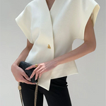 Design: O bluză clasică cu decolteu în V și nasturi, oferind un aspect atemporal și versatil.
