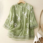 Realizată din materiale de calitate, precum organza ușoară și respirabilă, bluza se așează delicat pe pasformă, accentuând frumusețea siluetei. Detaliile cu broderii florale și straturile subtile de pe mâneci adaugă un plus de eleganță, în timp ce funcționalitatea sa permite o purtare confortabilă pe parcursul întregii zile. Este o alegere ideală pentru brunch-uri de primăvară sau plimbări relaxante de vară.