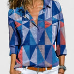 Bluză cu butoni Emily Indigo Bloom este locul unde farmecul modern întâlnește structura clasică. Cu un gradient floral delicat și un guler ascuțit, aduce eleganță ținutei tale de zi cu zi, cu o notă perfectă de artă și confort.