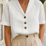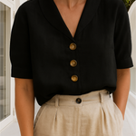 Această bluză casual combină stilul și confortul într-un mod elegant, făcând-o potrivită pentru diverse ocazii. Designul său rafinat al gulerului și mânecile scurte adaugă un strop de sofisticare, făcând-o ideală pentru purtat atât la birou, cât și în timpul timpului liber. Este o alegere excelentă pentru zilele călduroase, dar poate fi ușor integrată în ținute stratificate în timpul sezoanelor mai reci.
