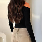 Design: Un top elegant cu mâneci lungi și un design cu umăr înclinat, având un decolteu asimetric modern și stilat.