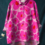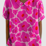 Odessa | Cămașă casual din bumbac pentru femei cu model floral roz vibrant