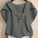 Această bluză casual îmbină perfect stilul modern cu un confort deosebit, fiind o alegere ideală pentru garderoba ta zilnică. Cu un decolteu asimetric și detalii elegante cu nasturi, bluza aduce o notă de rafinament, potrivită atât pentru activitățile de zi cu zi, cât și pentru evenimente semi-formale. Versatilitatea sa o face ușor de integrat în diverse ținute, adaptându-se cu ușurință la diferite sezoane.