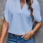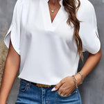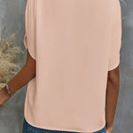 Design: Un top din chiffon ușor, cu o croială lejeră și decolteu rotund clasic, oferind un stil aerisit și versatil.