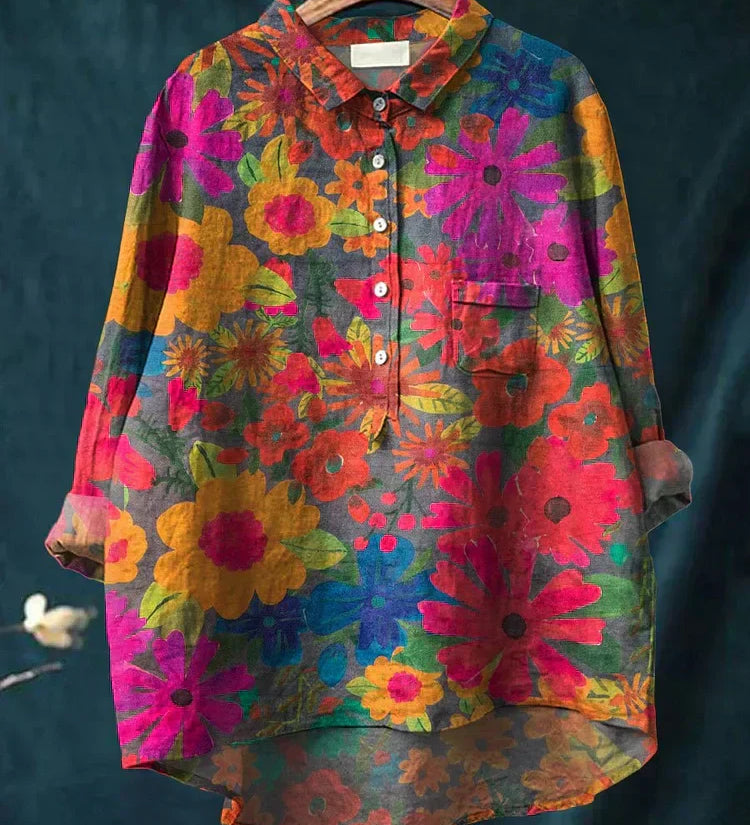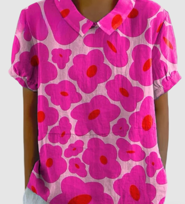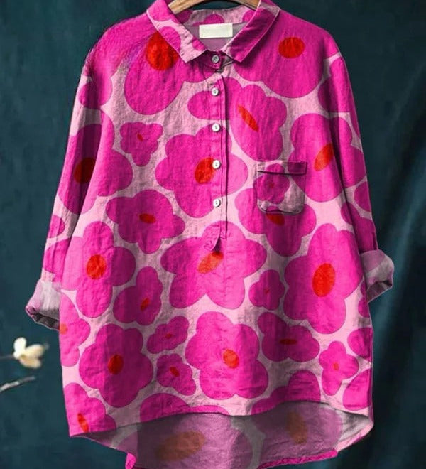 Odessa | Cămașă casual din bumbac pentru femei cu model floral roz vibrant