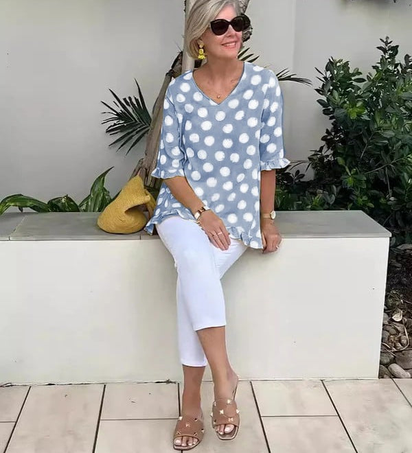 Audrey | Top Casual cu Imprimare și Decolteu în V