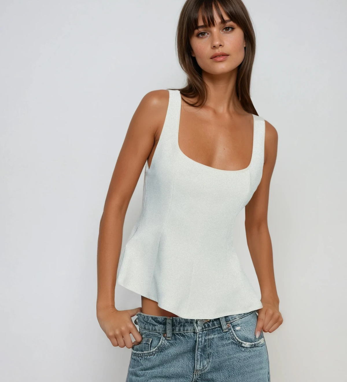 Top fără mâneci cu peplum și guler pătrat, slim-fit