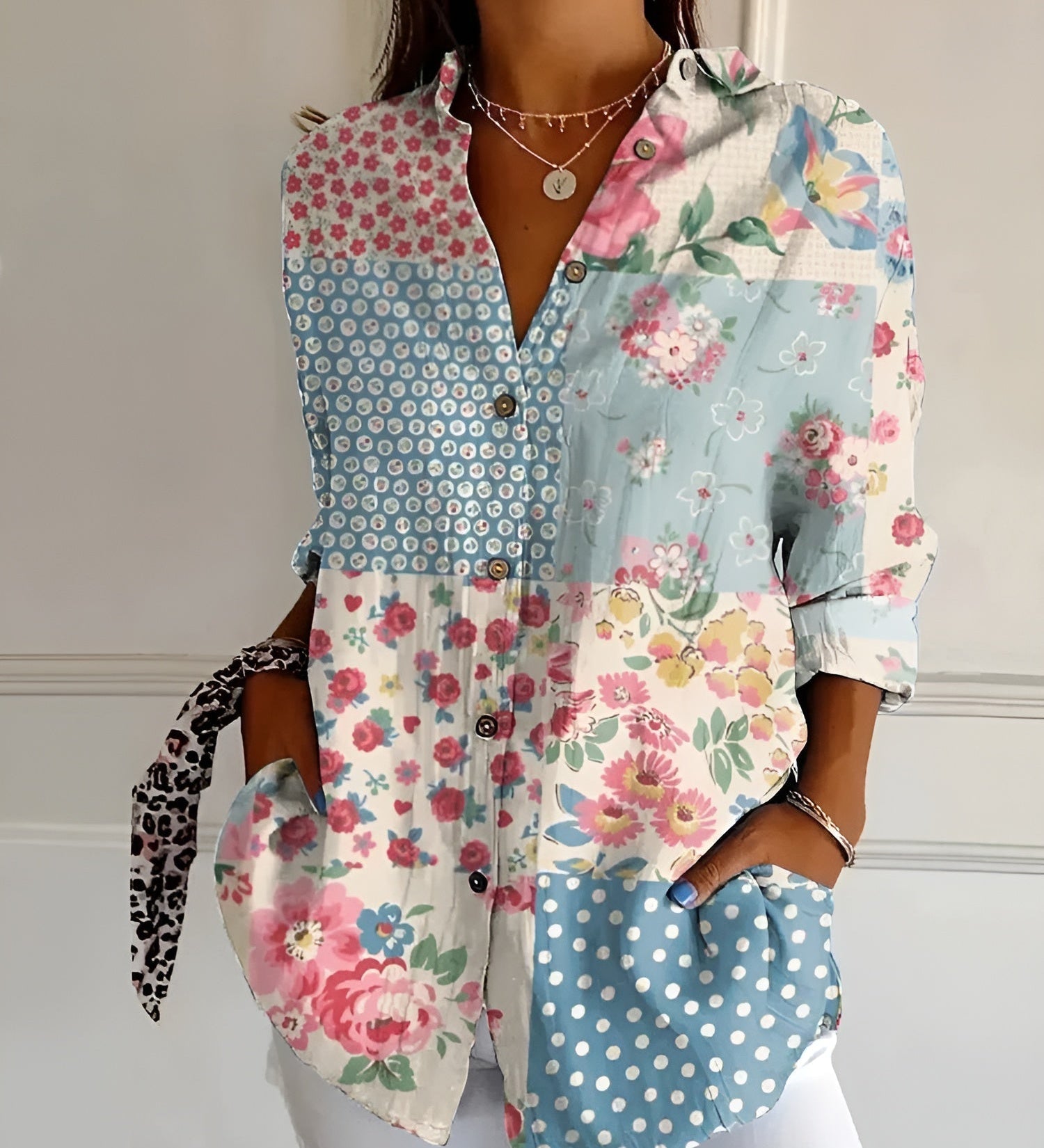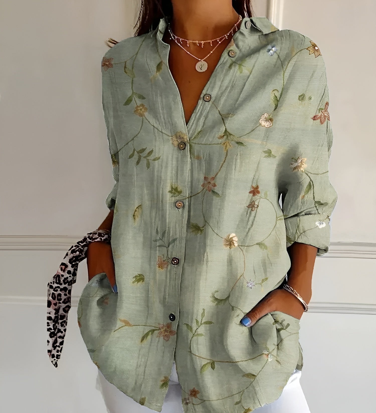 LINDA – CĂMAȘĂ CU BUTONI FLORALĂ ELEGANTĂ