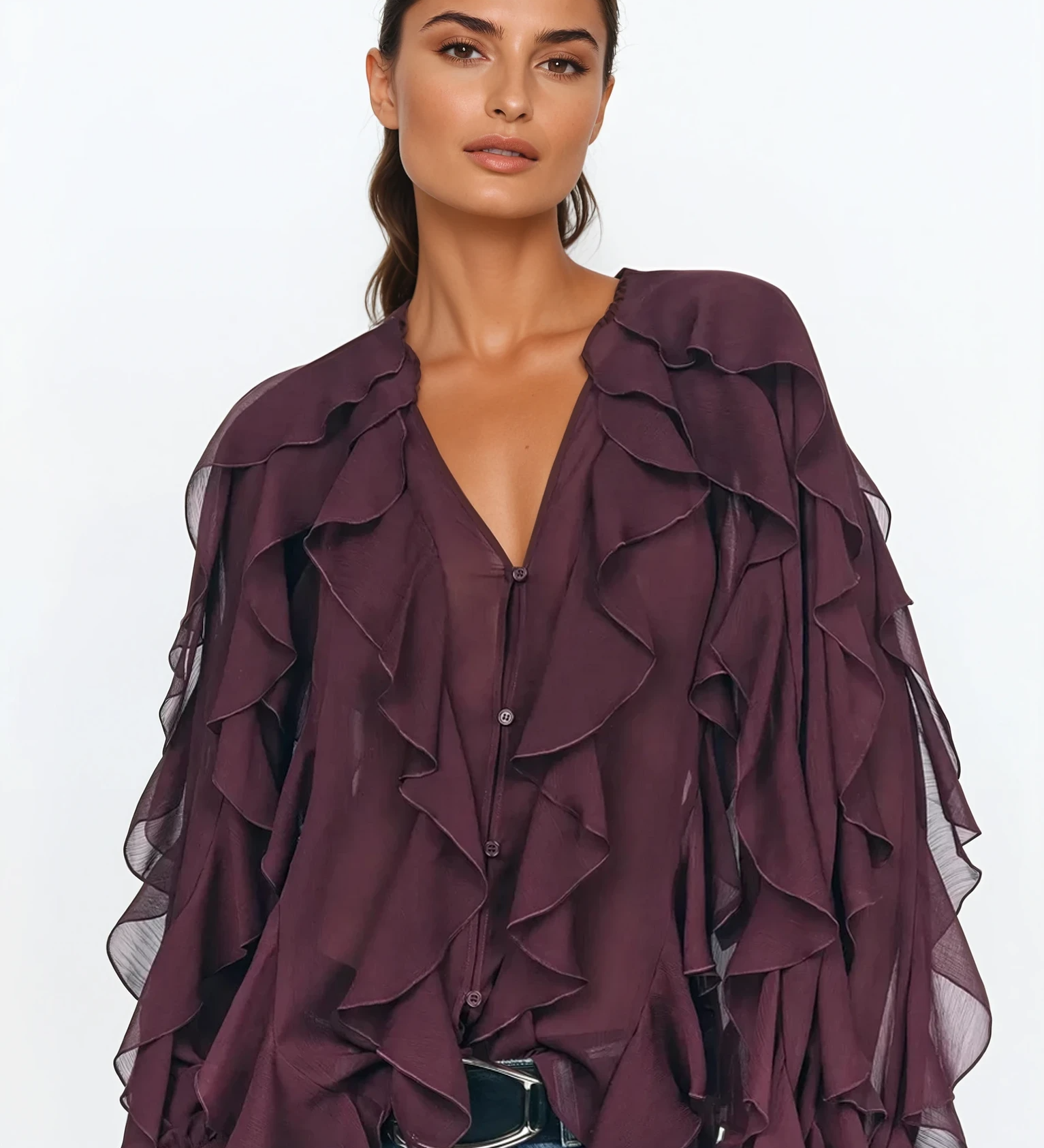 TERESA | Bluză cu luciu luxos și decolteu pliat
