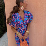 Îmbrățișați culorile îndrăznețe și imprimeurile jucăușe cu Rochia Midi cu Mâneci Puff Devika, concepută pentru a atrage atenția oriunde ați merge. Având un decolteu în formă de V care flatează și mâneci puff dramatice, această rochie combină sofisticarea cu o notă modernă și distractivă. Silueta lungă bodycon se conturează frumos pe formele tale, în timp ce imprimeul vibrant adaugă o notă vie și încrezătoare—perfectă pentru ieșiri noaptea sau evenimente stilate de zi.