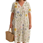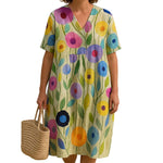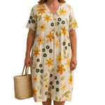 Rochia Grace Bloom & Breeze de vară este tovarășa ta veselă pentru escapadele în vreme caldă și confortul de zi cu zi. Cu forma sa aerisită, imprimeul floral jucăuș și decolteul în V care flatează, această rochie radiază bucurie și încredere. Fie că te plimbi prin piețe, te bucuri de un brunch sau te pregătești pentru paradis, este un must-have pentru un stil fără efort.