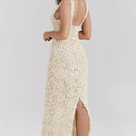 Rochia Hailey surprinde frumusețea delicată a petalelor înflorite cu straturile sale fluide și silueta romantică. Proiectată să se miște cu o grație fără efort, această rochie este o alegere de vis pentru ocazii speciale în care vrei să te simți atât frumoasă, cât și de neuitat.