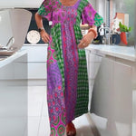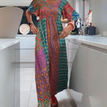 Intră în centrul atenției cu rochia maxi Maya Vibrant Escape—alegerea ta pentru un stil îndrăzneț și confort. Această frumusețe inspirată de patchwork transformă fiecare zi într-o evadare veselă cu designul său fluid și imprimeurile eclectice.