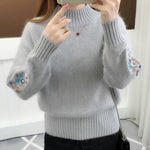 SASKIA | Pulover din bumbac gros tricotat cu broderie florală