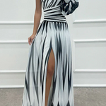 De ce să alegi Rochia Maxi Elegantă cu Dungi Stella cu Un Umăr?