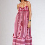 Rochia Victoria Bohemian Breeze Maxi este un amestec perfect de farmec liber și eleganță atemporală. Concepută cu o talie empire delicată, această rochie îți pune în valoare silueta, păstrând în același timp o potrivire relaxată, fără efort. Detaliile brodate intricate adaugă o notă artizanală, în timp ce bretelele ajustabile asigură o potrivire personalizabilă și confortabilă. Fusta vaporoasă, cu volane, se mișcă frumos cu fiecare pas, creând o siluetă visătoare și etereală. Un detaliu cu franjuri la bust îmbunătățește estetica boho-chic, făcând-o esențială în garderoba ta pentru orice ocazie.